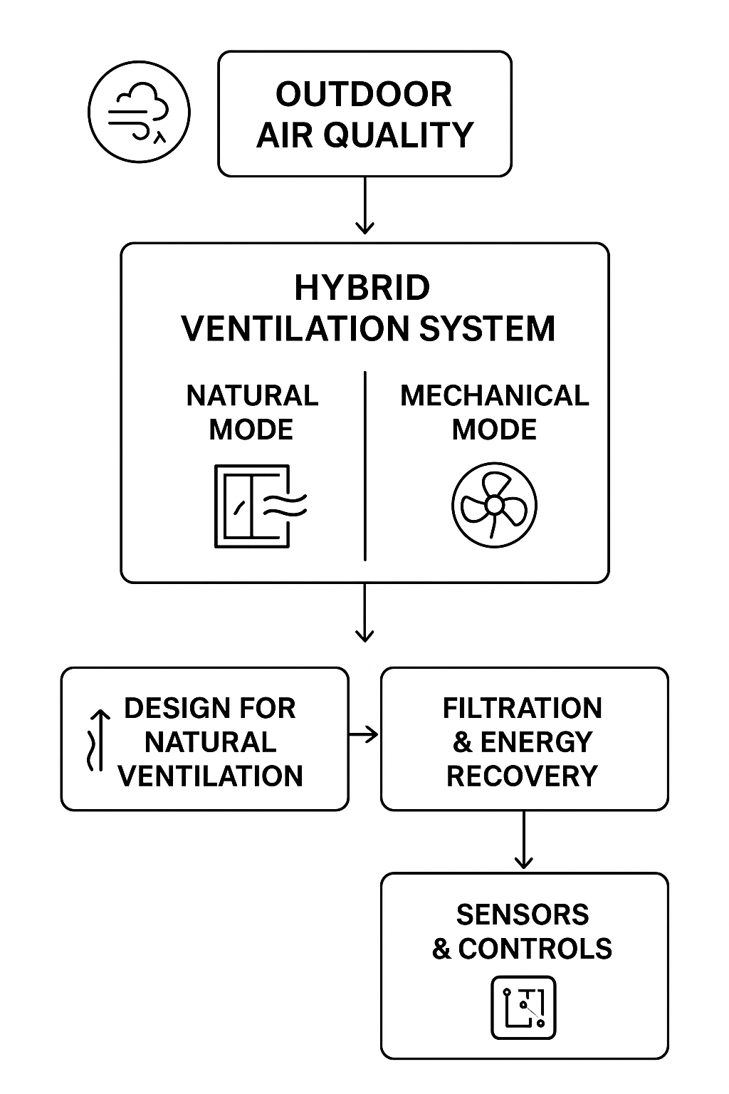 つまり、空気質データに基づいて自然換気と機械換気を賢く組み合わせる方法です。