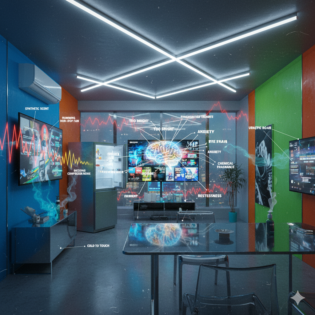脳は絶えず混乱した刺激を処理し続け、**感覚疲労(sensory fatigue)**を引き起こします。