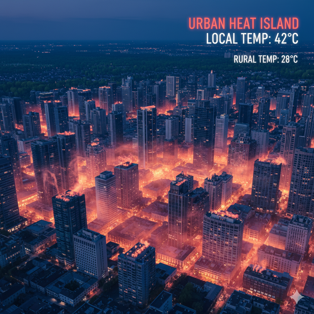 - Kết quả: Khi hàng ngàn tòa nhà cùng làm điều này, nhiệt độ tại các khu đô thị tăng lên đáng kể so với vùng ngoại ô. 🏙️🔥