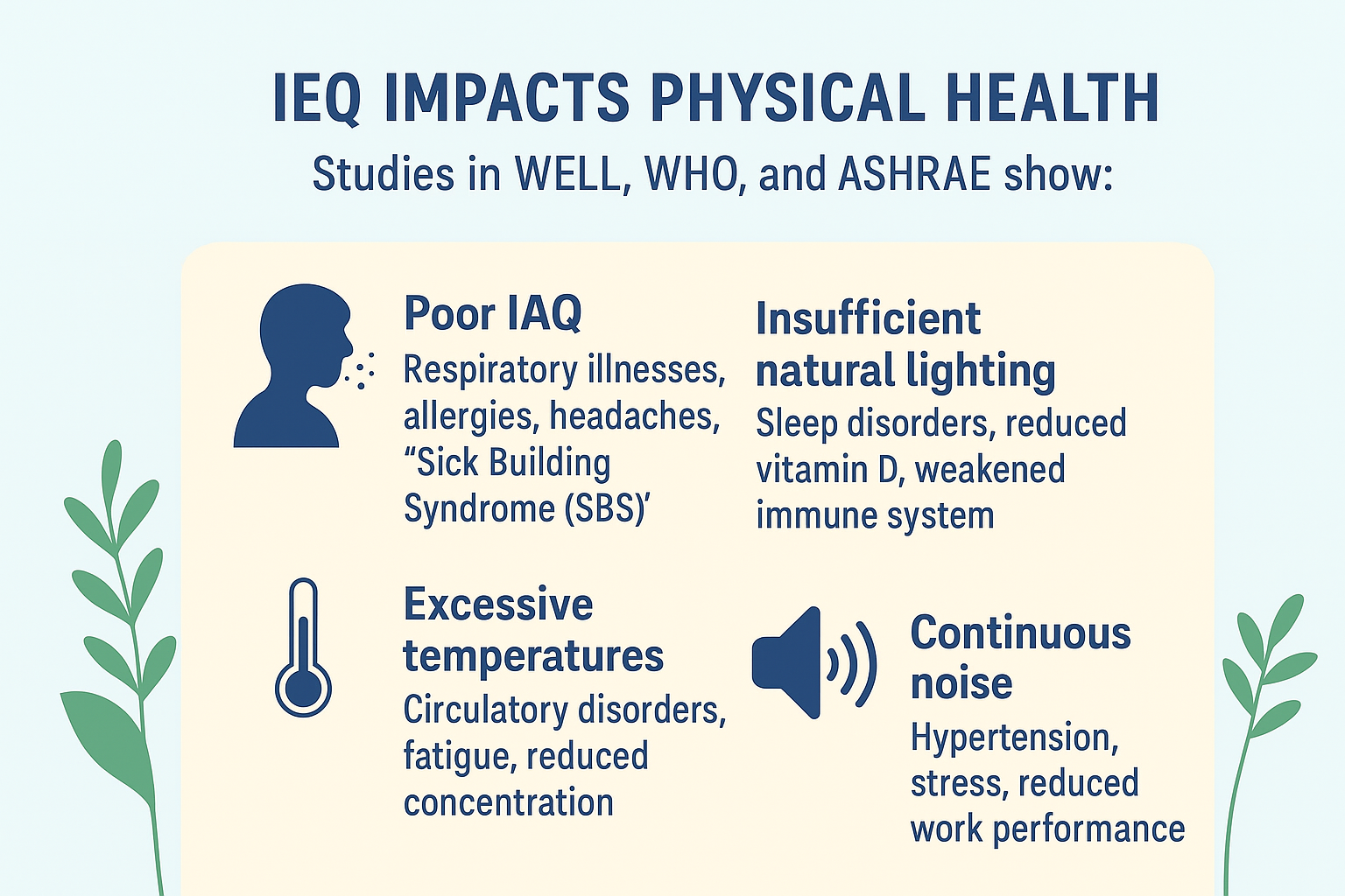 | 1️⃣ IEQ(物理的) | 空気・光・音・温度・空間 | 身体的快適さ | |